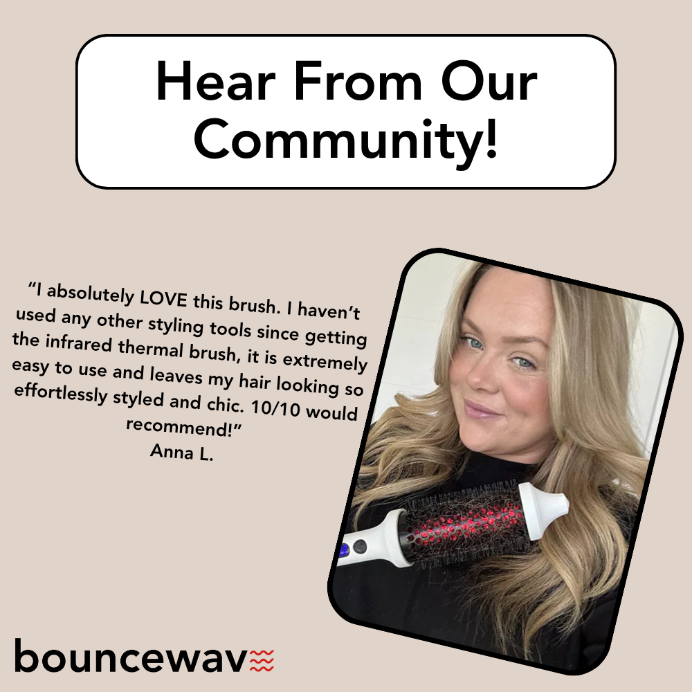 The BounceWave Infrared Thermal Bounce Brush uses infrared light technology to dry, smooth, and shape your hair from the inside out. Unlike traditional curlers that burn the outer layer, infrared heat gently penetrates the cortex and preserves moisture, preventing damage, and delivering long-lasting shine and hydration.